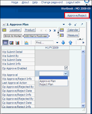 In the Wp Approval measure, select one of the two options: Approve Plan or Reject Plan.