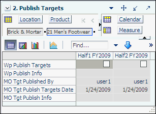 Publishing a target copies your middle out Wp measure information to the MO Tgt measures in your workbook, and then it commits those target measures to the database so that bottom up users can retrieve them.