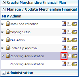The Reporting Administration workbook is used to facilitate the Oracle Retail Fashion Planning Bundle Reports. These reports are unsupported samples provided by Oracle Retail.