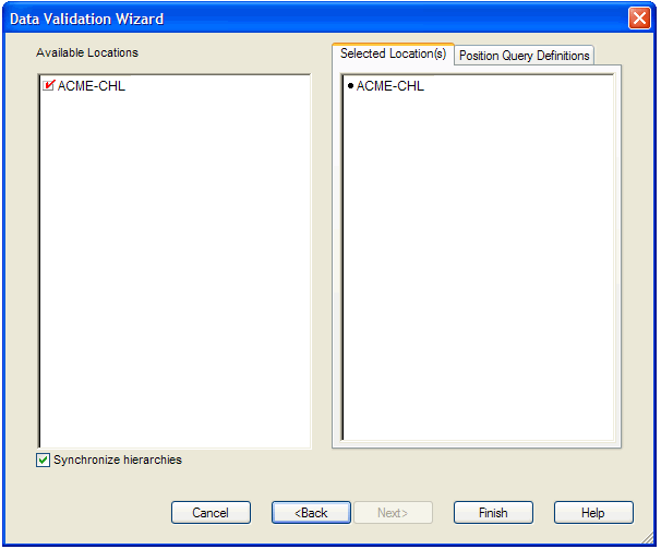 The Select Location step appears. Select the channels you want to validate and click Finish.