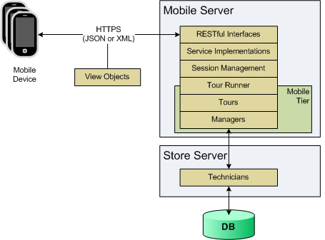 The tours executed by the API are the same tours defined in a typical ORPOS client, some with minor modifications to support head-less operation. As such, the tours make use of existing Manager/Technician pairs and access the store server just like the register-base POS client. The classes used to launch and return from these tours are located in the oracle.retail.stores.mobilepos.tours package and its sub-packages. The mobile tier classes needed to run these tours are found in the oracle.retail.stores.mobilepos.manager.tier package.