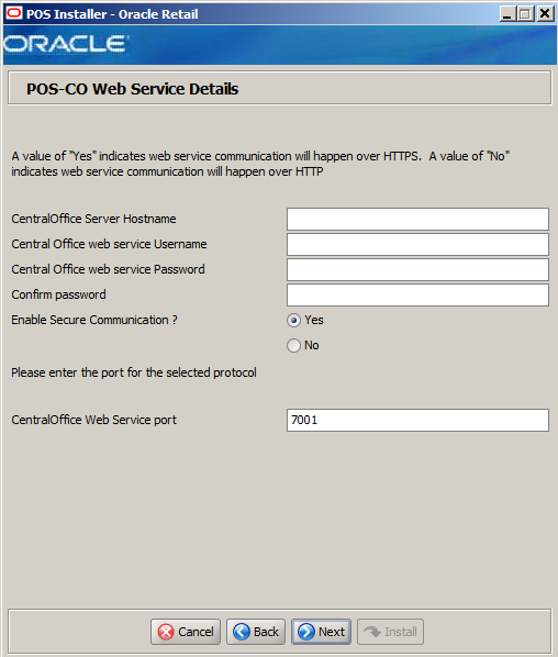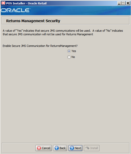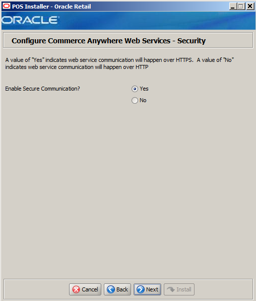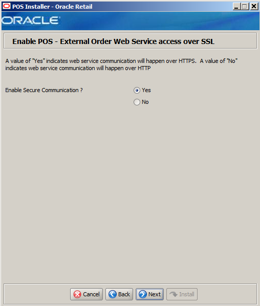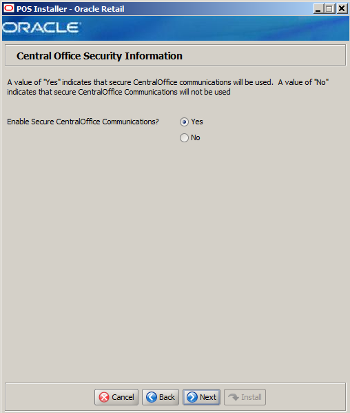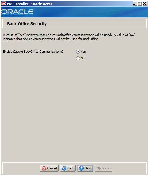 | Field Description | Select Yes if secure communication with Back Office is required. |