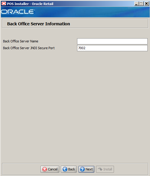 | Field Description | Enter the port number for the Back Office application. This is the port number that was selected when the Back Office domain was created. |