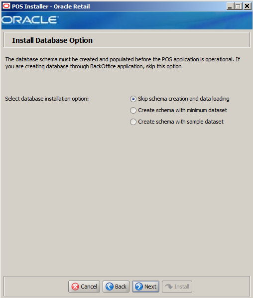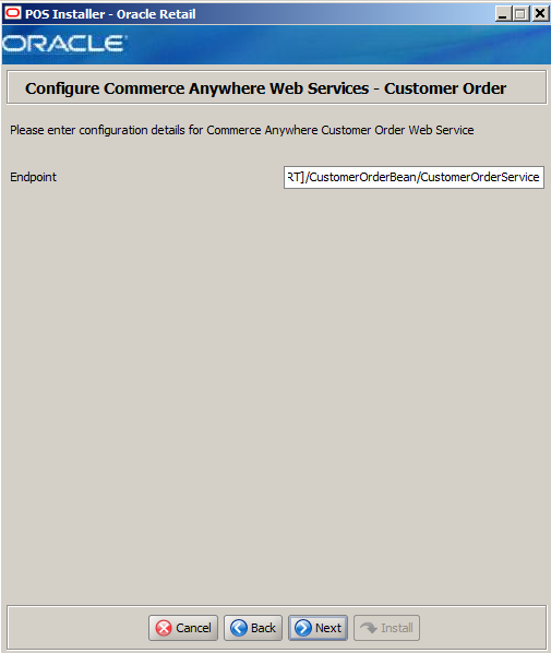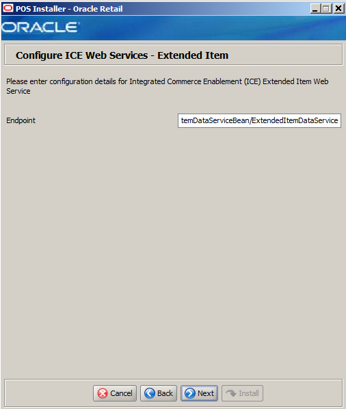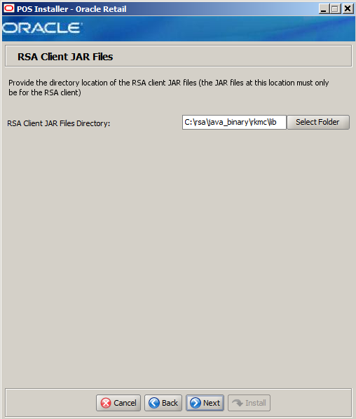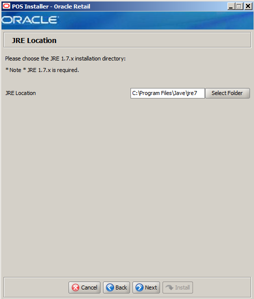 | Field Description | Choose the directory into which the Point-of-Service files are copied. The default for the first directory in the path is OracleRetailStore. This directory should be the same for all Oracle Retail POS Suite products.