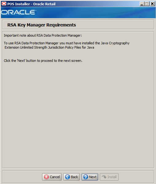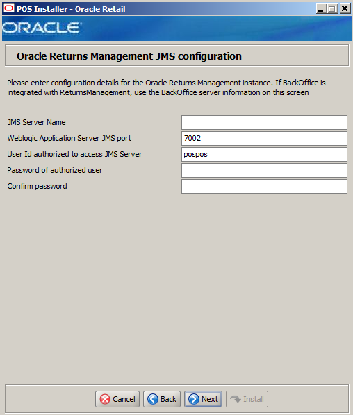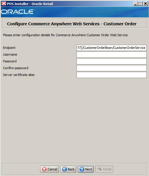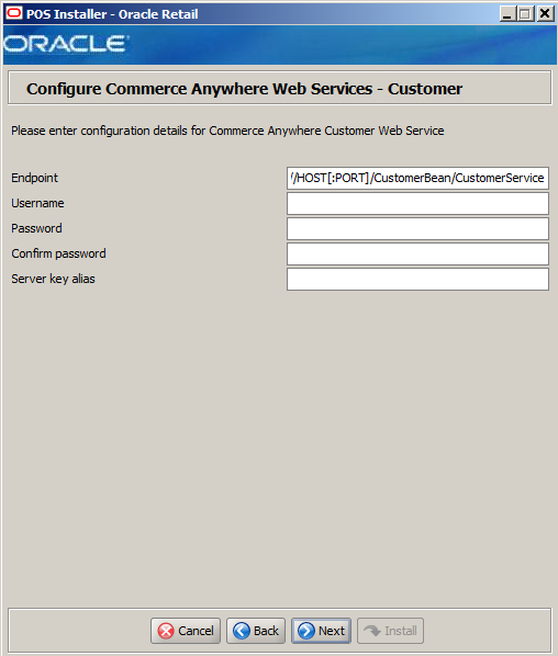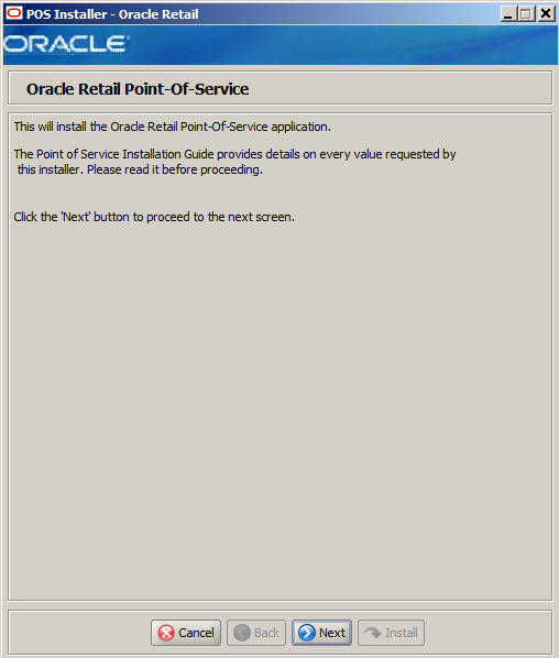 You need specific details about your environment for the installer to successfully install the Point-of-Service application. This appendix shows the windows that are displayed during the installation of the Point-of-Service server. Depending on the options you select, you may not see some windows or fields.
