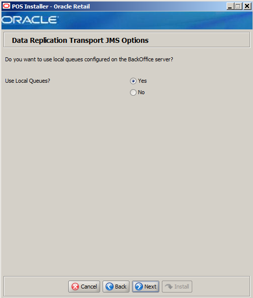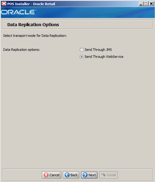 This window is only displayed if Send through JMS is selected in the Data Replication Options window.