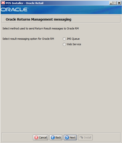 | Field Description | Choose the method to use to send return result messages to Oracle Retail Returns Management: