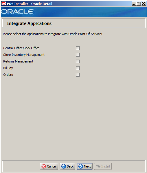 | Field Title | Please select the applications to integrate with Oracle Point-of-Service |