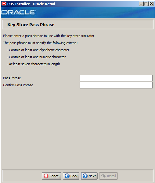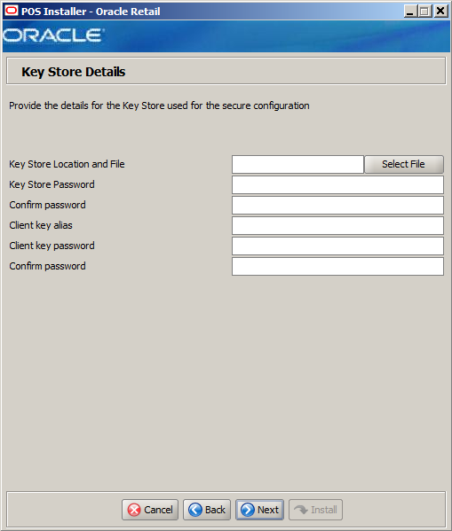 | Field Description | Reentered Key Store Password used to confirm the password.