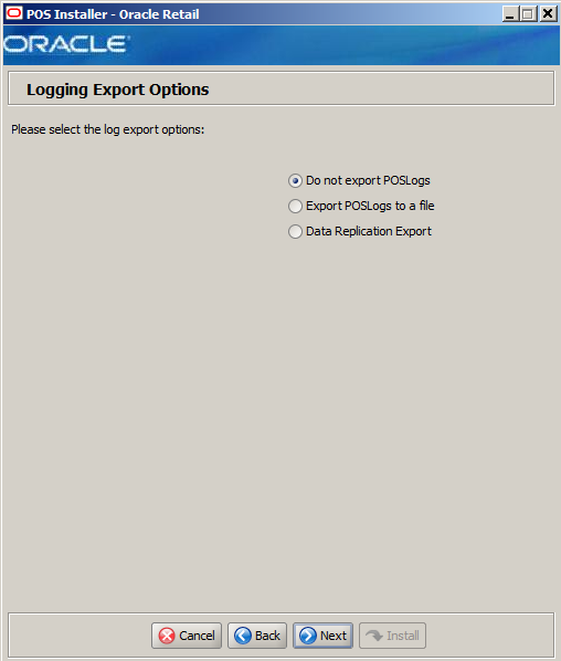 This window is only displayed if Data Replication Export is selected in the Logging Export Options window.