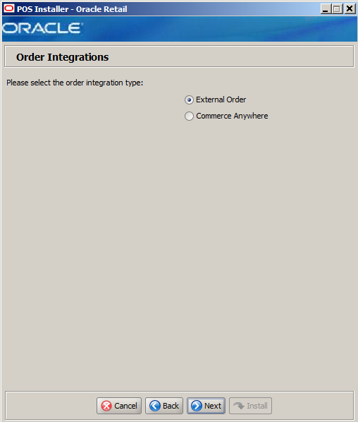 This window is only displayed if Commerce Anywhere is selected in the Order Integrations window.