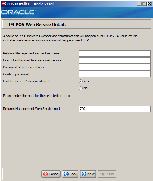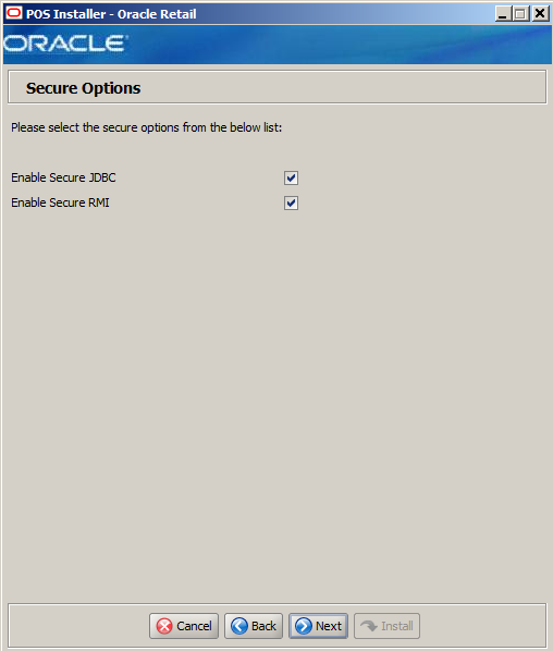 | Field Description | Select whether secure RMI is to be used for communication between the store server and registers. |