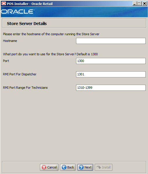 | Field Description | Enter the port number of the store server host computer used for RMI communication to this installation's Point-of-Service dispatcher. |