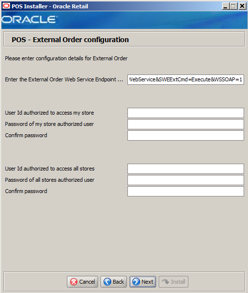 | Field Description | Secure URL containing the specific parameters used by Point-of-Service to access the database schema. See Appendix E for the expected syntax.