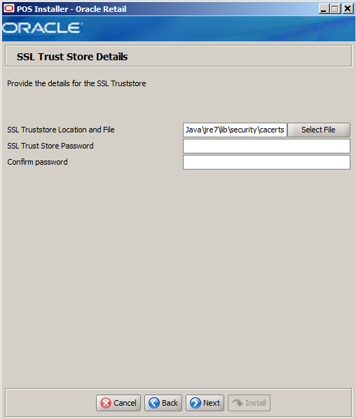 Note: The passwords in the SSL Trust Store Password and Confirm Password fields must match. |