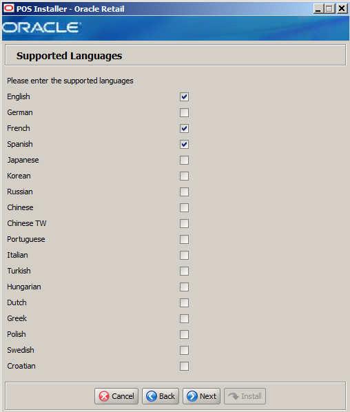 | Field Description | Select the languages that will be available for the Point-of-Service application.