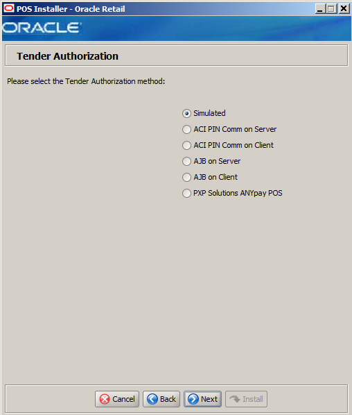 Note: If the store server is located at a remote location, it is highly recommended to configure ACI PINComm or AJB at each client in order to help minimize network delay. Note: Demo installations should use the Simulated option. |