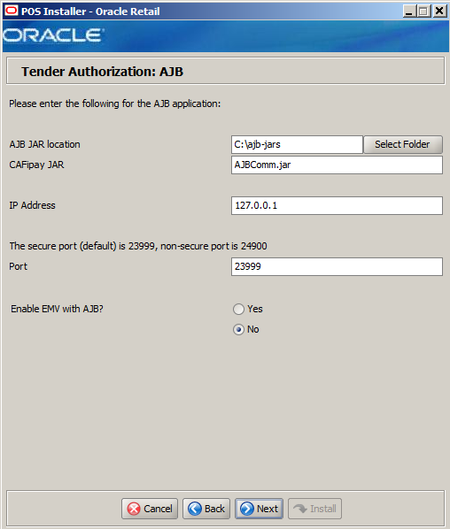 | Field Description | Select whether Europay, MasterCard, and Visa (EMV) is enabled with AJB: