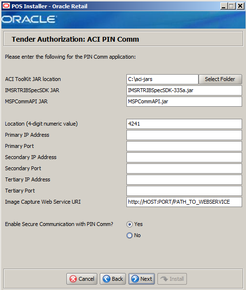 | Field Description | Select Yes for communication with ACI PINComm using HTTPS. |
