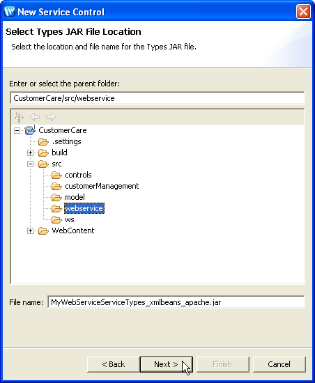 In the File name field, enter the desired name of the service control. The default name is the name of the WSDL appended with "Control".