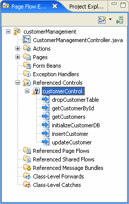 1. On the Page Flow Explorer tab, open the node Referenced Controls > customerControl and locate the getCustomers method.