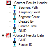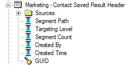 - Replace Marketing - Contact Saved Result Header with your Marketing <target level> Saved Result Header logical dimension table name.