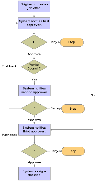 This diagram shows the delivered three-step job offer approval process: