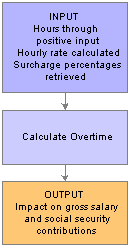 This diagram illustrates how the overtime functionality fits into the overall pay process flow of Global Payroll for Spain.