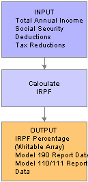 This diagram illustrates how the IRPF calculation process fits into the overall pay process flow of Global Payroll for Spain.