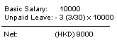 Three days of unpaid leave has been taken in April and the basic salary in April is 10000 HKD. The April monthly salary is calculated as:
