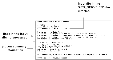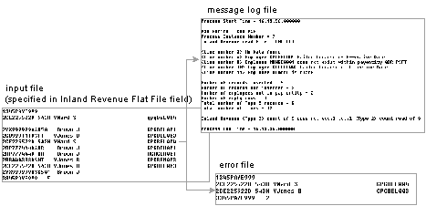 If any records could not be processed, the system adds an error message to a message log file and adds the data to an error file as illustrated in this diagram: