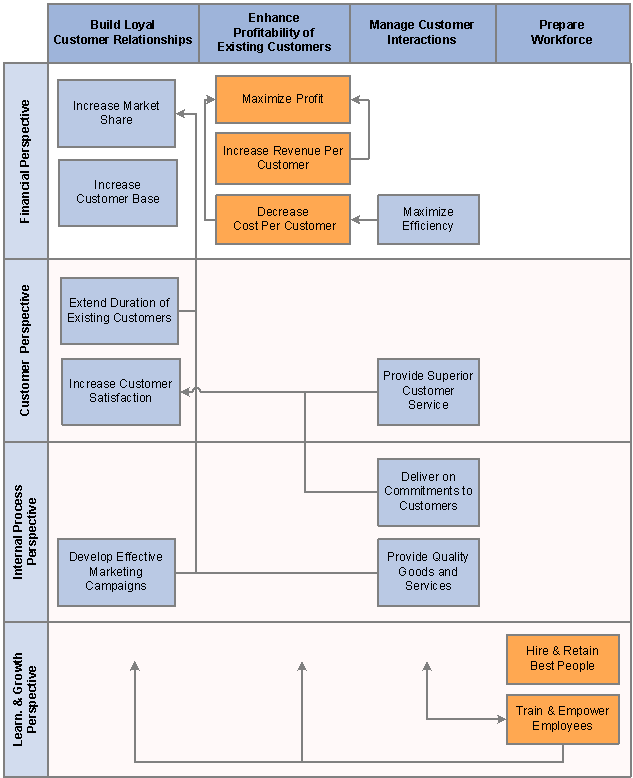 Customer Scorecard delivers a set of preconfigured KPIs that provide executive and middle management with the tools to analyze marketing, sales, and customer support activities, and compare them with business objectives. These KPIs have been developed in conjunction with leading consultants, and are linked to a set of critical success factors to answer questions such as: