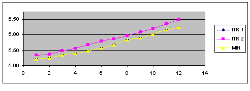 The lag frequency period is not included in the rolling average interest rate calculation unless the value is set to zero. For example, if today is February 2002, and you set the lag frequency to three months and the rolling average frequency to eight months, the application calculates the rolling average from November 2001 to April 2001. The lag period from February 2002 to December 2002 is not included in the interest rate calculation.