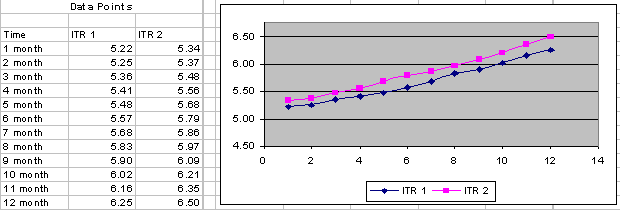 You also have the option of creating a parallel shift in the drift model by using the data points that you previously selected on the Include Market Issue grid. Just select the period of time that you want to apply the shift in the Parallel Shift group box (rather than creating a series individual future period points in the Future Rate Changes group box) and indicate the value of the aggregate move in basis points. This shift applies to all data points that you previously selected on the Include Market Issue grid. Then, click the Apply button.