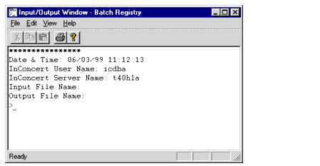 The PC and UNIX Batch Registry applications have different appearances, but they operate in the same way: they accept commands at a prompt and display the results.