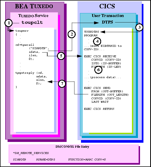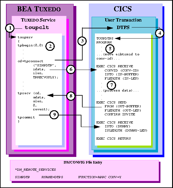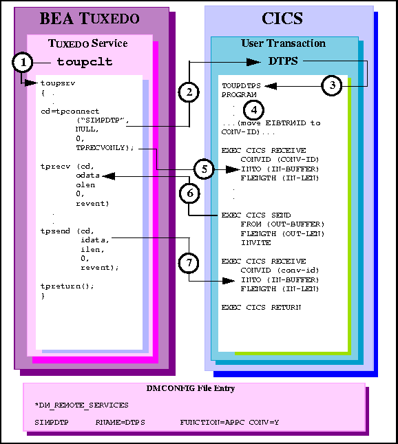 Figure 7-15 TUXEDO Conversational Client to CICS/ESA DTP, Client Retains Control