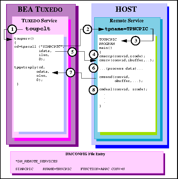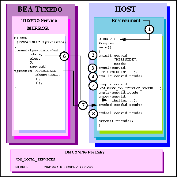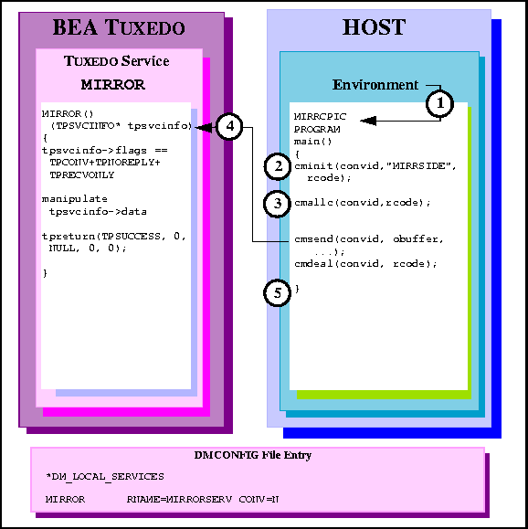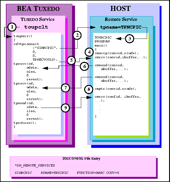 Figure 7-31 Host CPI-C to TUXEDO Conversational Service, Client Retains Control