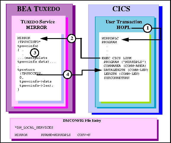 Figure 7-10 Transactional CICS/ESA DPL to TUXEDO Request/Response Server