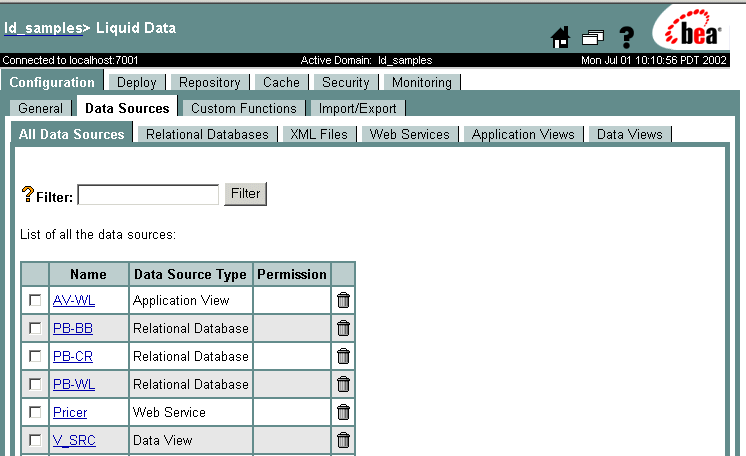 e-docs > Liquid Data for WebLogic > Administration Guide > Viewing and Accessing All Configured Data Sources |