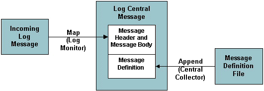 For information about how the Log Monitor maps messages, see Chapter 5, "Creating Log Mappings," in the Log Central Configuration Guide. For information about the Log Central message format, see Log Central Message and Message Definition Formats.