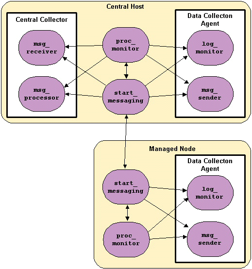 The Process Monitor is a daemon that runs on the central host and each managed node. The following processes register with the Process Monitor at startup: