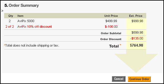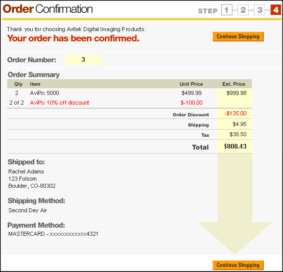 To continue the tour, click the Continue Order button to proceed to the step3.jsp Order Submission page.