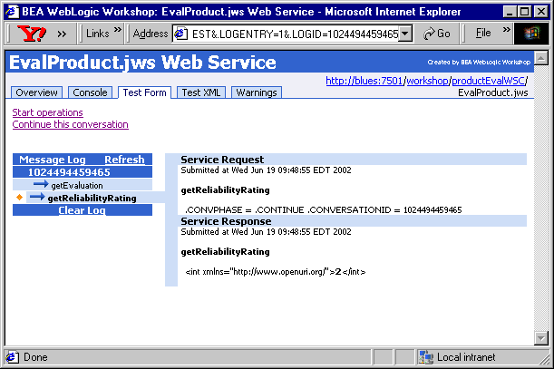 The Payment Web service uses the conversational aspect of WebLogic Workshop framework. The first call is to authorize the credit card; we pass in the credit card number and the amount to be authorized as arguments. After the credit card authorization is complete, a call is made to capture an amount. Eventually a request is made to settle the amount.