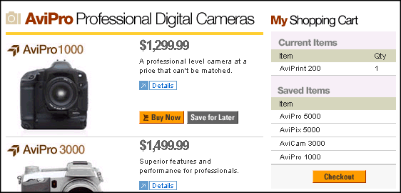 To continue the tour, click the Save for Later button next to an item in the cart's Current Items list.