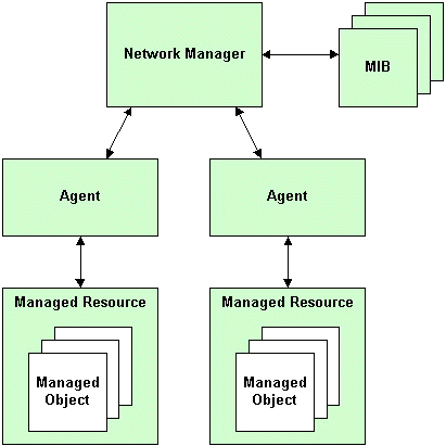 A manager relies upon the Management Information Base (MIB), a database that contains definitions and information about the properties of managed resources and the services the agents support. When a new agent is added to extend the manager's domain, the manager must be provided with a new MIB component that defines the manageable features of the resources managed through that new agent.