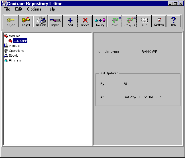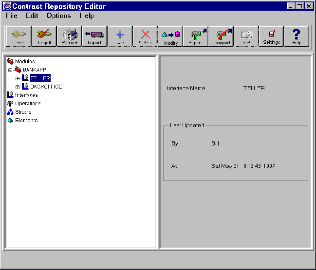 Note: You can modify the components of an exported operation. You do not have to unexport the operation in order to modify its components. If you modify an exported operation, it does not automatically change to unexported status. A modified exported operation remains exported until you unexport it with the unexport toolbar button or menu option.