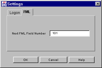 You get the FML Settings window by choosing Settings->FML from the menu bar. This window is where you can set the default number to be used for the next FML field that you create. (You have the option to create a new FML field from the Add Element window.)