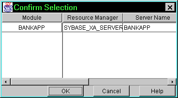 The Confirm Selection window allows you to examine the modules selected, any Resource Manager selected, and the Server Name before generating code and files.