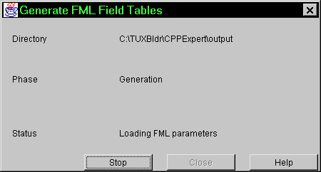 The Generate FML Field Tables window allows you to generate a list of BEA TUXEDO FML fields from all the elements in the Contract Repository.