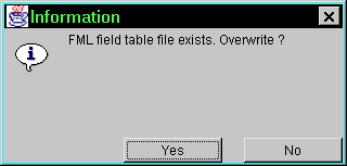 If an FML field table file already exists, a confirmation dialog box appears requesting permission to overwrite the file, shown below: